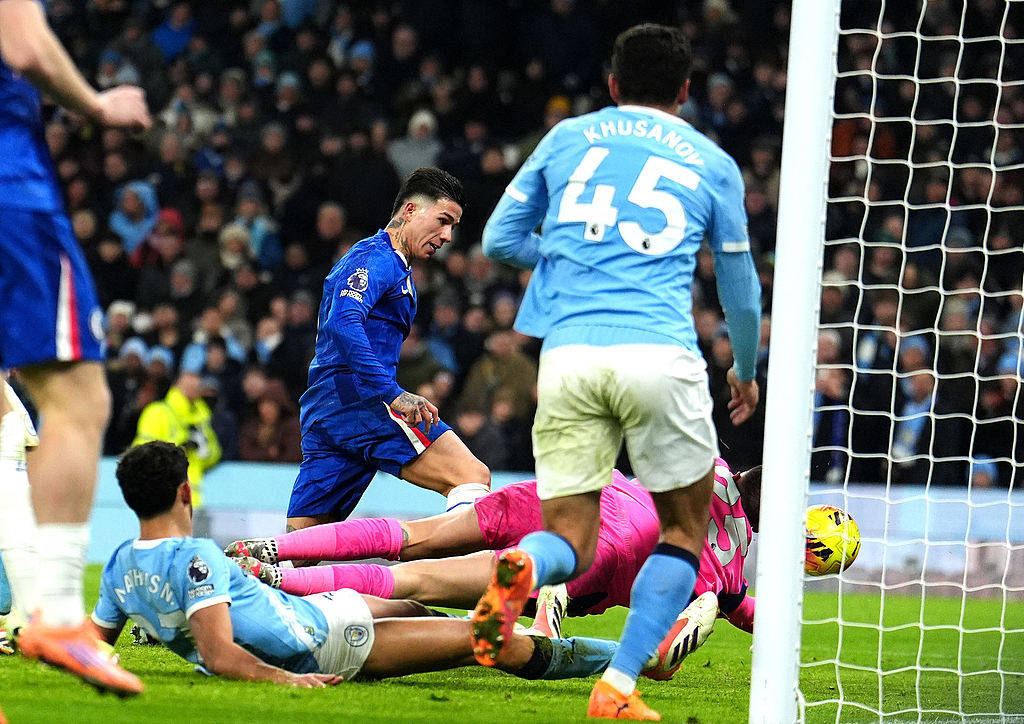 本轮英超最后一场比赛在伊蒂哈德球场举行,曼城需要在领头羊阿森纳赢球的情况下继续保持追击姿态,刚刚经历主帅下课风波的切尔西看上去是一个合适的祭旗者,然而,伤停补时第5分钟恩佐的绝平进球证明,唤醒斗志的切尔西从来不是一个被容易拿捏的对象。